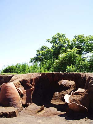 今週、当遺跡では初めての井戸跡が検出されました。小さい素掘りのものですが、今も底からこんこんと水が湧き出ています。中からは土玉が2点見つかりました。 |