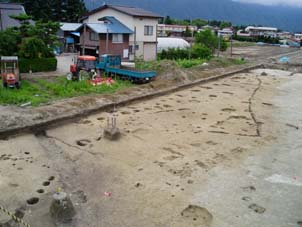 作業風景を南西から撮影しています。精査と写真撮影は終了し、平面図作成をしています。