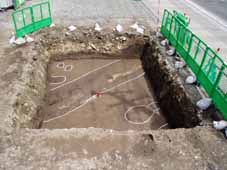 | 28トレンチ遺構検出状況 28トレンチ西側からは土坑や溝跡が見つかりました。 |