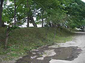 土塁が草刈されてきれいになっていました。昔はお城をぐるりと囲んでいた土塁ですが、今は西側の一辺しか残されていません。