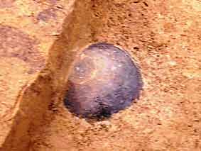 古墳時代土師器甕出土状況 底部を上にした逆位で出土しました。 |