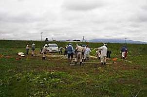 プレハブ設営状況(左から器材・事務・休憩棟)