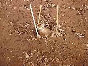 竪穴住居煙道検出状況 煙道の先端部と考えられます。 |