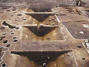 溝跡 幅約3m、深さ約80cm、V字形の溝です。土師器、須恵器の蓋、坏などが出土しています。 |