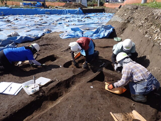 引き続き遺物を含む地層を広く掘り下げていきます。お盆前に比べて朝晩はいくらか涼しく感じられる日が増えてきましたが、日中の作業は変わらず暑いので、こまめな休憩が欠かせません。