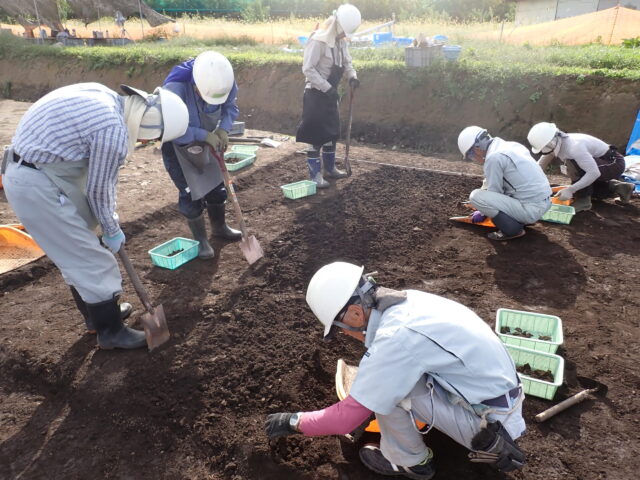土曜日に遺跡発掘体験の企画を実施しました。古代の土器がたくさん出土する東原遺跡の特色を体感してもらいました。