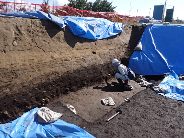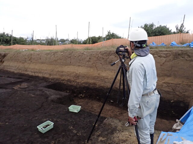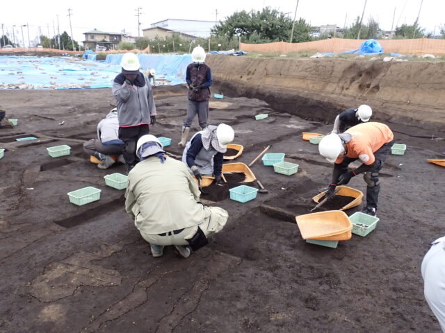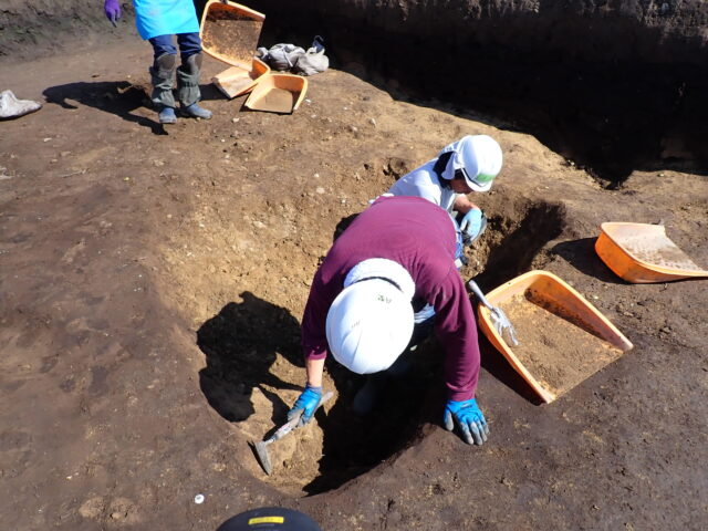 北側では大きな土坑が見つかっています。記録作業を終え、完掘を目指して掘っていきます。