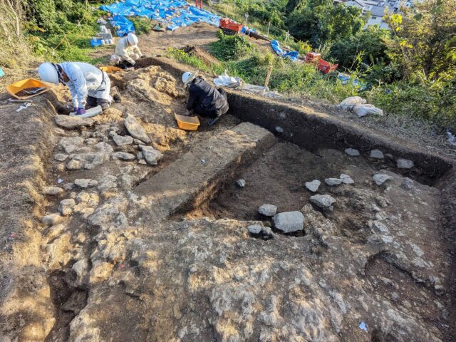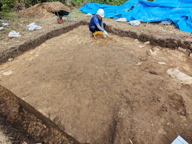 5区の円型状の遺構を調査しました。砥石が多く出土しています。